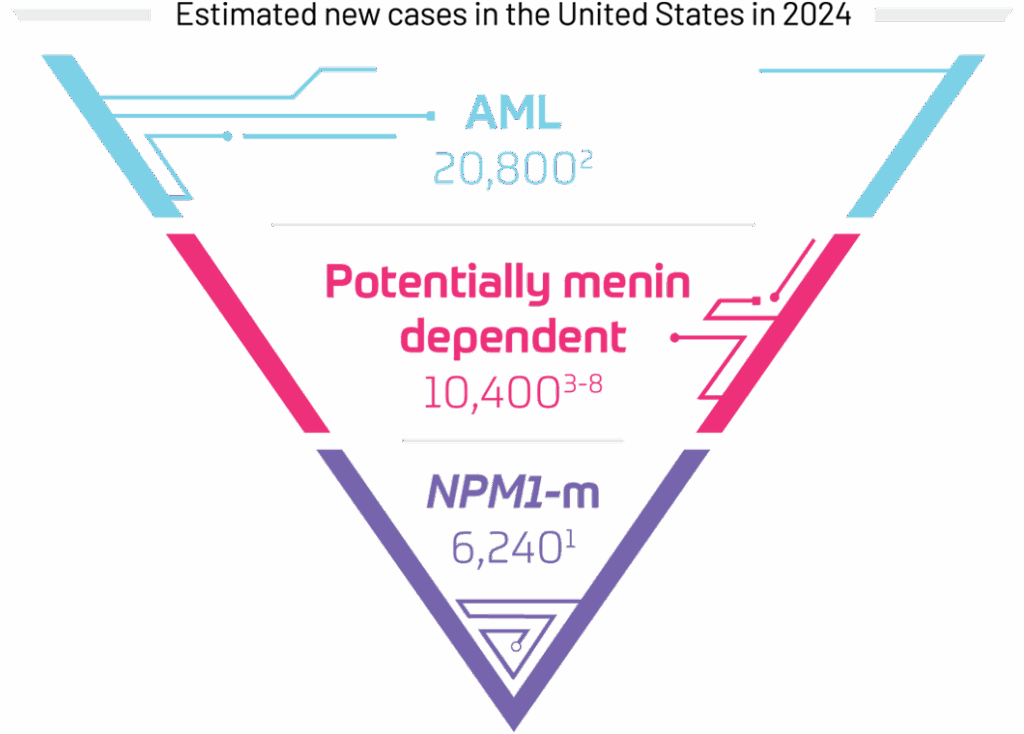bBased on a retrospective analysis of patients with R/R AML with NPM1m (n=206) compared with NPM1-wt (n=1516) treated with standard-of-care therapies.11